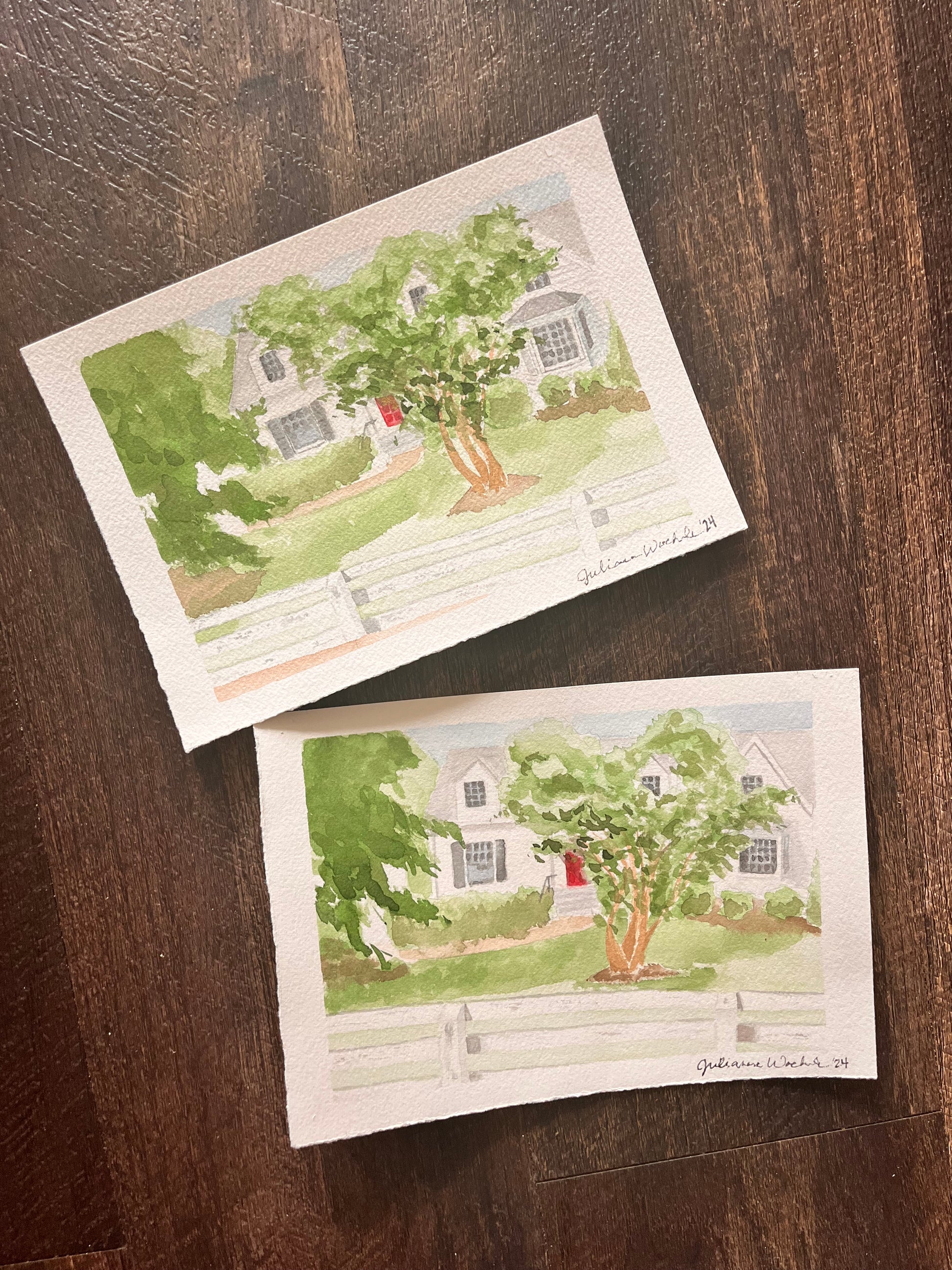 Painted with care on professional watercolor paper. A timeless way to capture the charm of your home. Contact me for framing options!