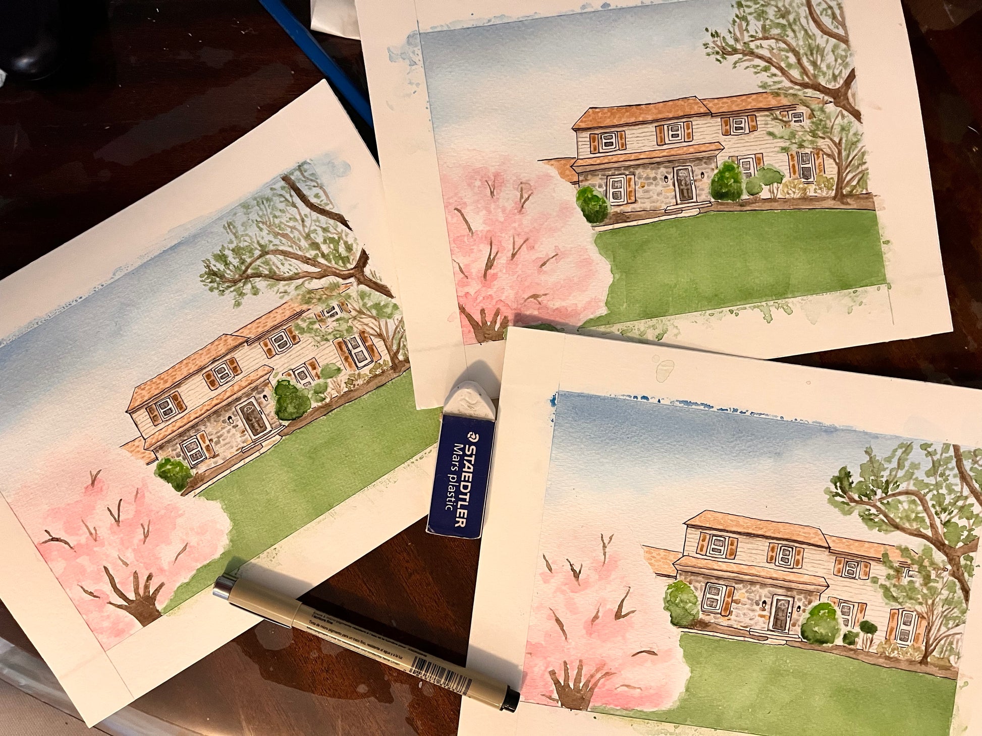 Turn a photo of your home into a one-of-a-kind, hand-painted watercolor keepsake. These custom house portraits are perfect for housewarming gifts, real estate closing gifts, or to commemorate a forever home.