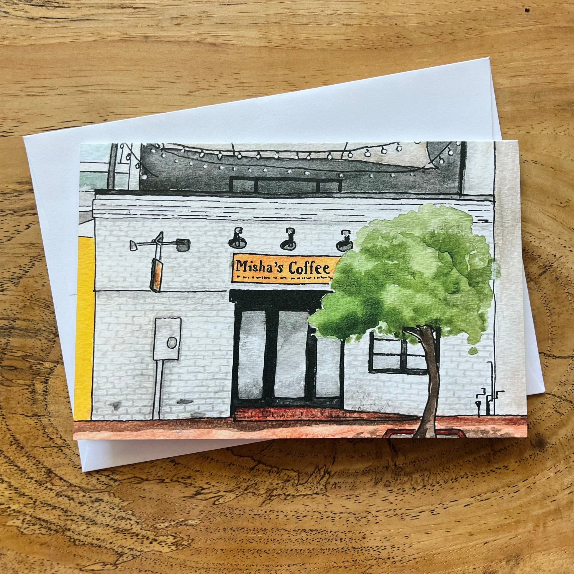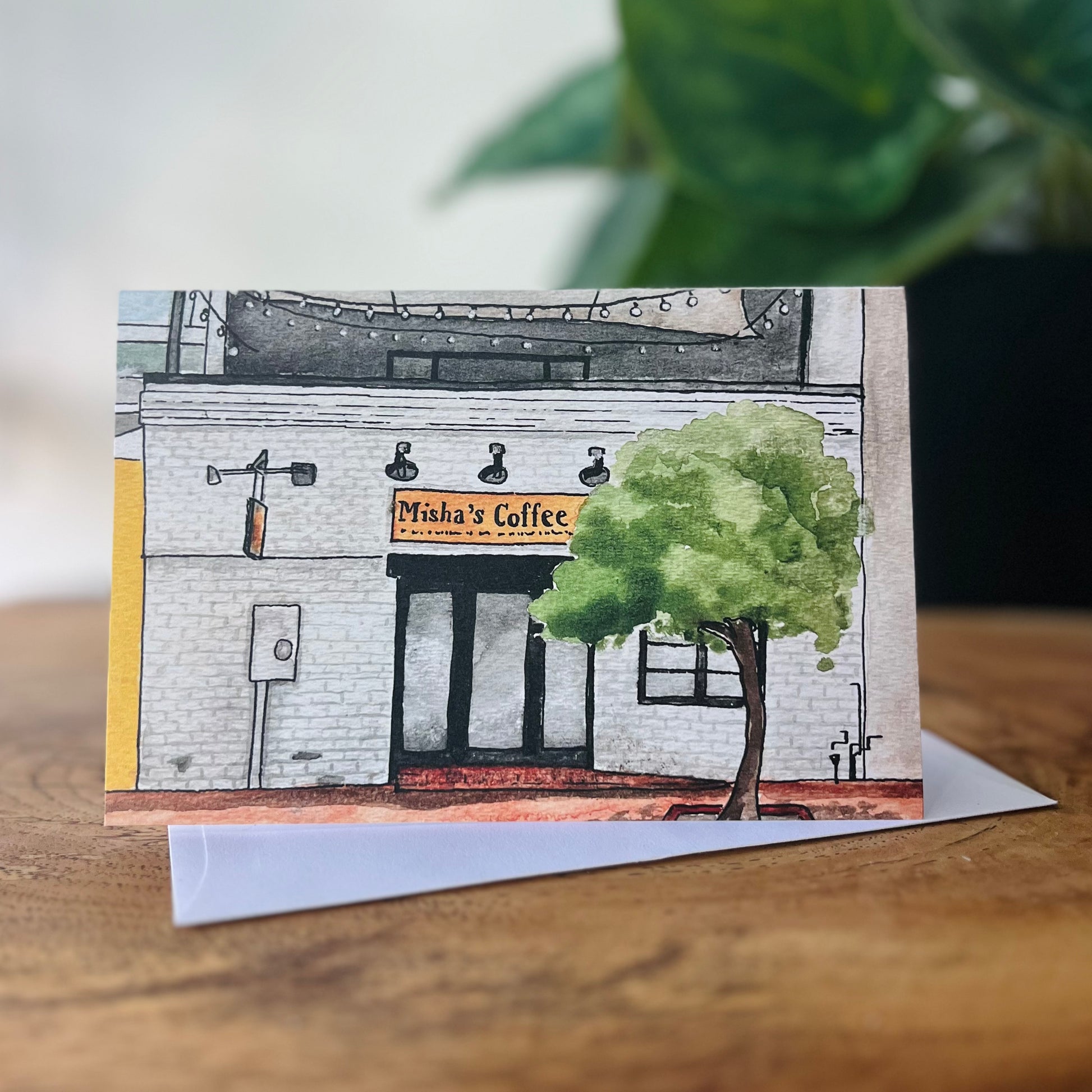 Warm, cozy vibes of Alexandria’s beloved coffee shop in watercolor. 4x6 folded card, blank inside, with envelope. Artwork by Julianne Woehrle — part of my “Old Town” series.